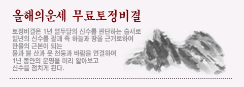 ¹«·áÅäÁ¤ºñ°á Æò»ý¿î¼¼´Â ÀüüÀûÀÎ ¿î¼¼¸¦ º»´Ù¸é ÅäÁ¤ºñ°áÀº ÇØ´ç³âµµÀÇ ¿î¼¼¸¦ Ç®ÀÌÇÏ´Â °ÍÀ̶ó ÀÌÇØÇÏ¸é ½±°Ú´Ù.